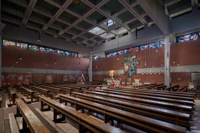 Das Altarbild in St. Paul Königswiesen hat die frei interpretierte Grundform des Franziskus-Kreuzes. Die Mosaikarbeit weist Teile in Schiefer und Glas auf sowie eingearbeitete Hinterglasmalereien. Es steht inhaltlich und farblich in Beziehung zu den umlaufenden Glasfenstern von Erich Schickling.